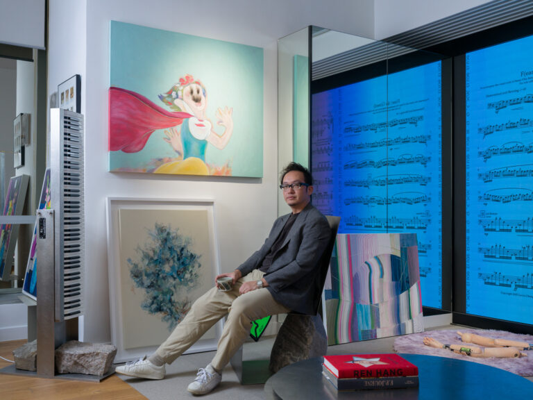 Henry Chu, a Hong Kong-based digital artist, offers a complementary perspective on collecting, shaped by his own creative practice and his engagement with contemporary art. Chu’s entry into the art world was serendipitous. A web designer turned artist, his transition began in 2000. “My first artwork, TV Clock, was created in 2005,” he recalls. However, it wasn’t until 2015 that he began collecting, a pivotal moment that redefined his relationship with art. “When you buy art, you are also purchasing a fraction of the artist’s life,” he observes.